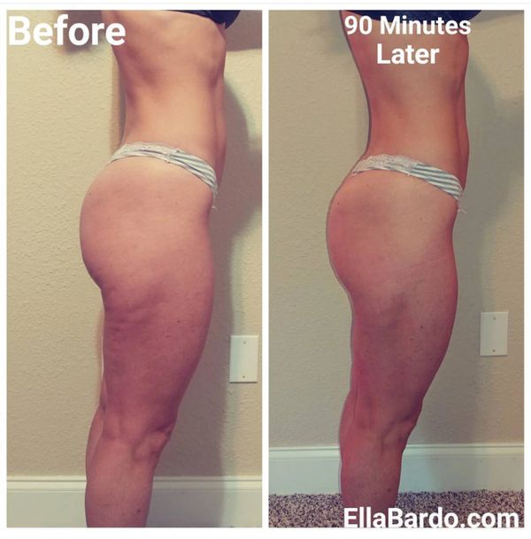 Results are instant and will get better over the following days. It works on areas like the legs, glutes, core, back and arms. The only areas it doesn’t work on are chest and upper back.